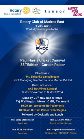 The Rotary Club of Madras East proudly hosted its flagship project,. . .